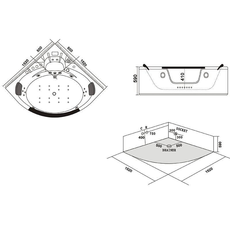 Opis produktu Wanna z hydromasażem narożna podgrzewacz wody Orino 632 152x152