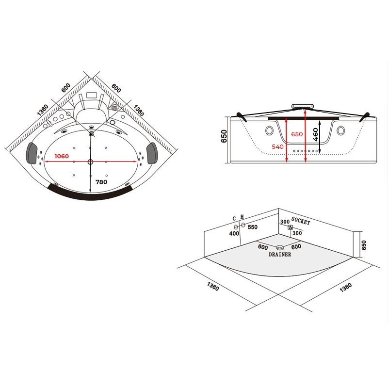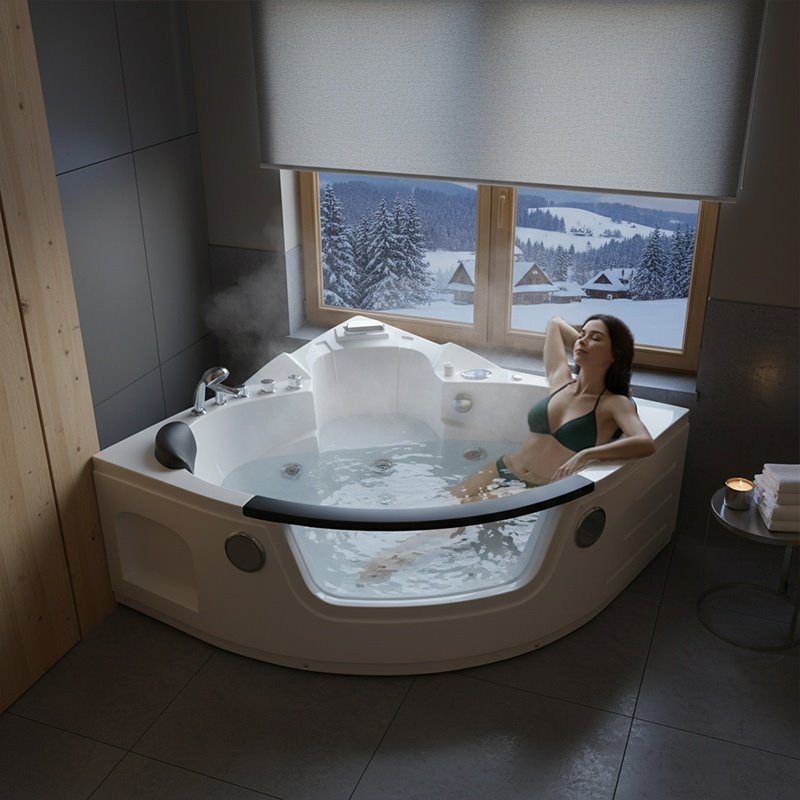 Opis produktu Wanna z hydromasażem narożna podgrzewacz wody Orino 632C 135x135