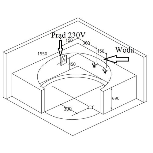 - 2 szt. czujniki poziomu wody: dzięki tej funkcji pompę wody można uruchomić dopiero wtedy kiedy w wannie będzie odpowiedni poziom wody.
