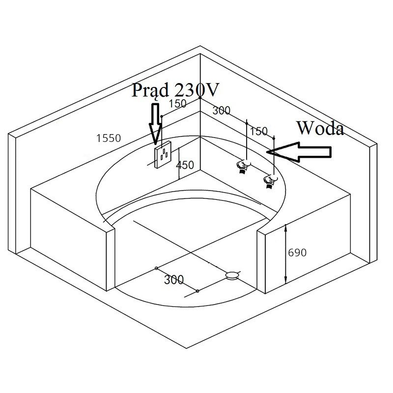 Opis produktu Wanna z hydromasażem okrągła do zabudowy + obudowa 155x155 cm Della 916