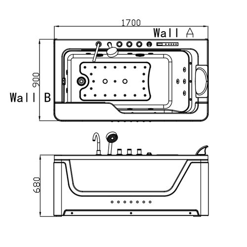 - Długość wanny: 170 cm