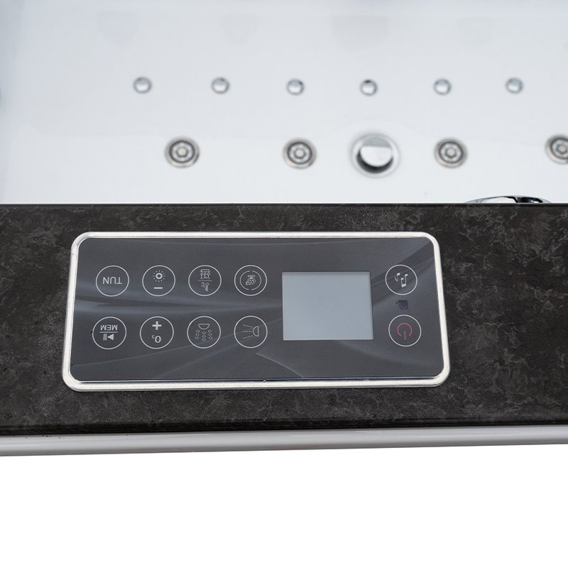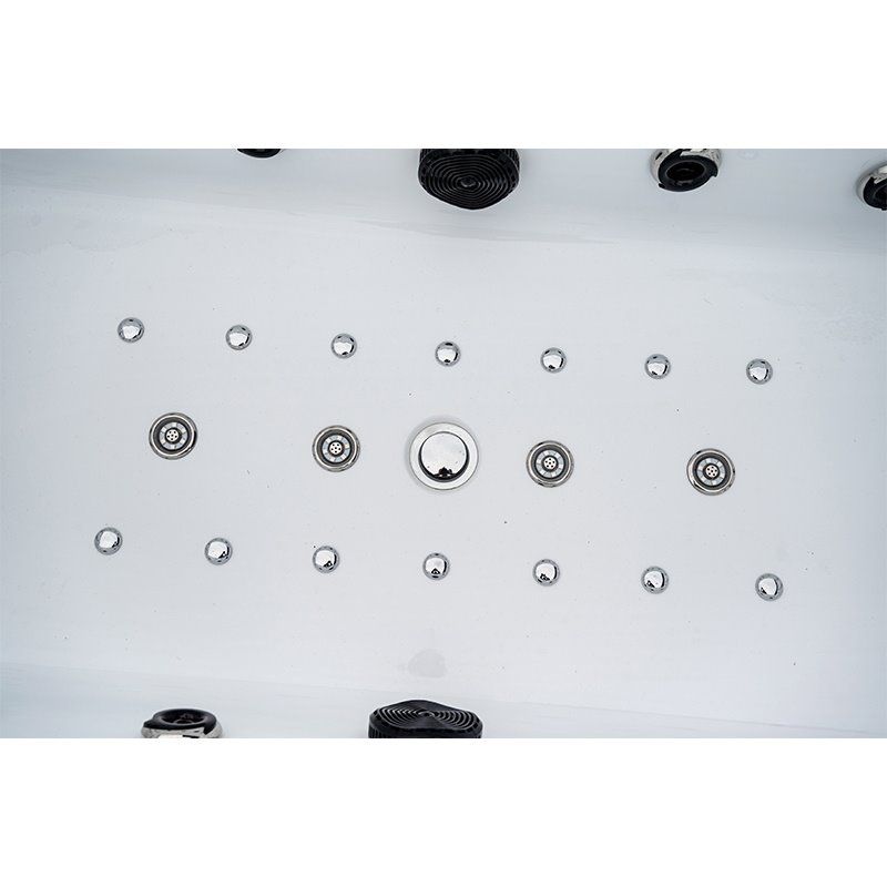 W wannie są zamontowane 3 rodzaje dysz: dysze powietrzne, dysze wodne, duża dysza wodna kierunkowa.