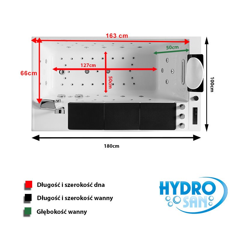 Opis produktu Wanna z hydromasażem prostokątna 180x100 cm Niagara 911
