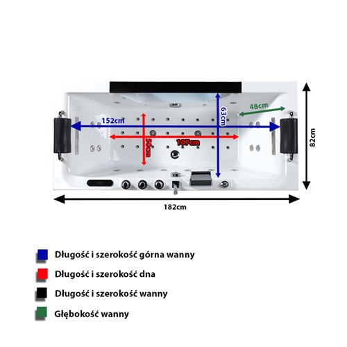 Opis produktu Wanna z hydromasażem prostokątna 182x82 cm Carina 938 Hydrosan
