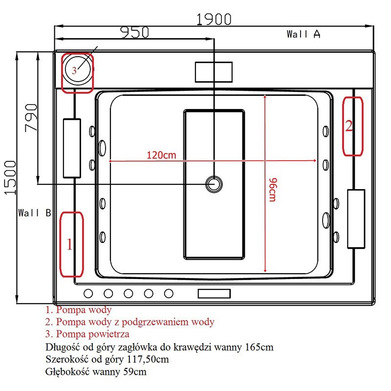 - Długość wanny: 190 cm
