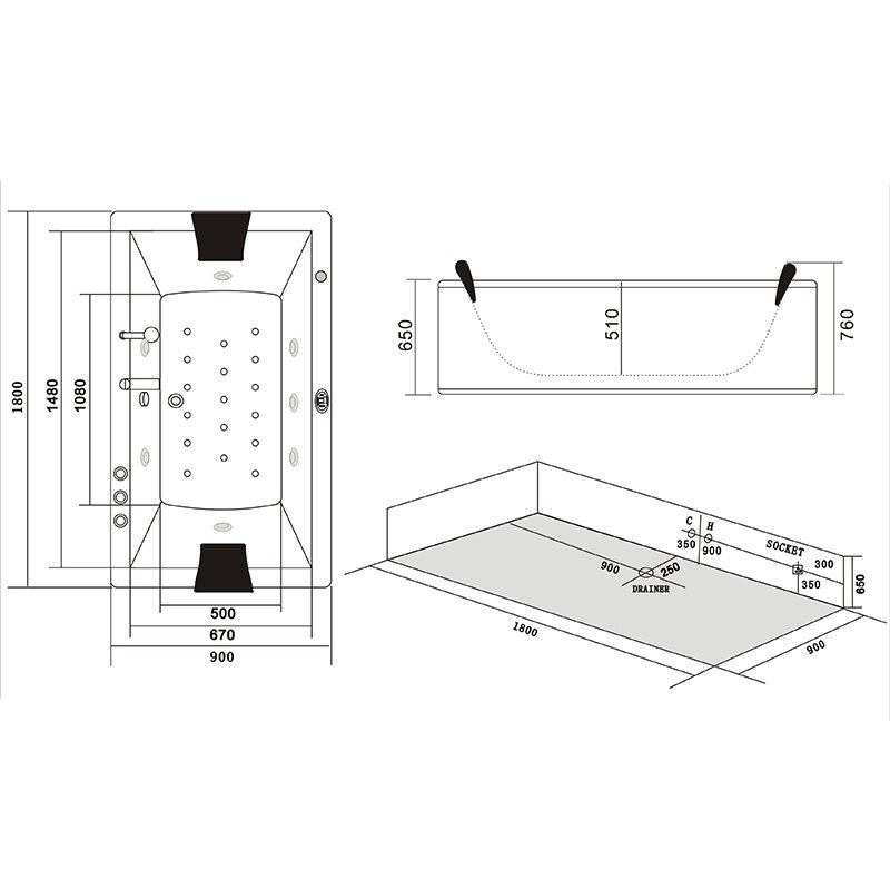 Opis produktu Wanna z hydromasażem prostokątna Ramona 640 180x90