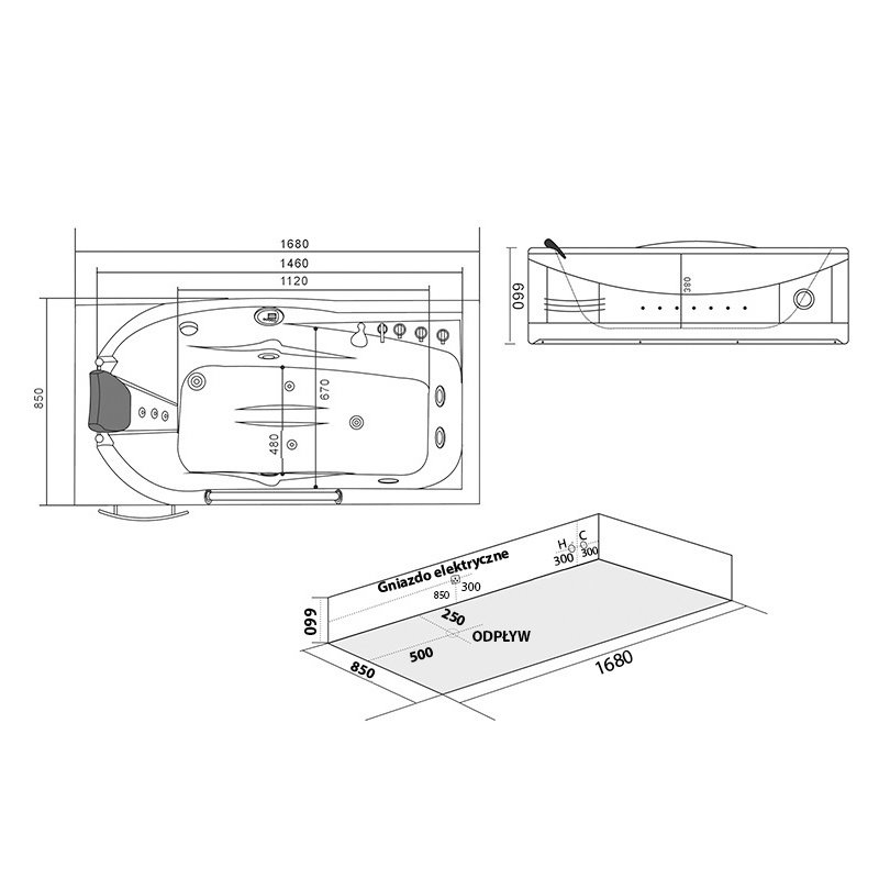 Opis produktu Wanna z hydromasażem prostokątna Ramzes 634 168 cm