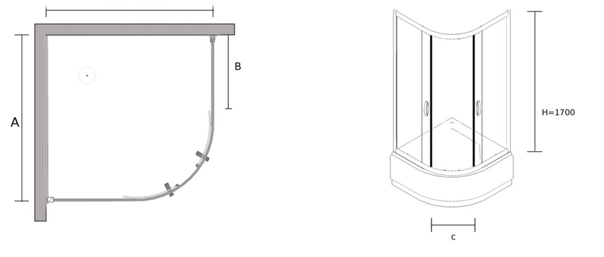 Wymiar 80x80x170 cm (wysokość bez brodzika ) - 205 cm wysokość z brodzikiem
