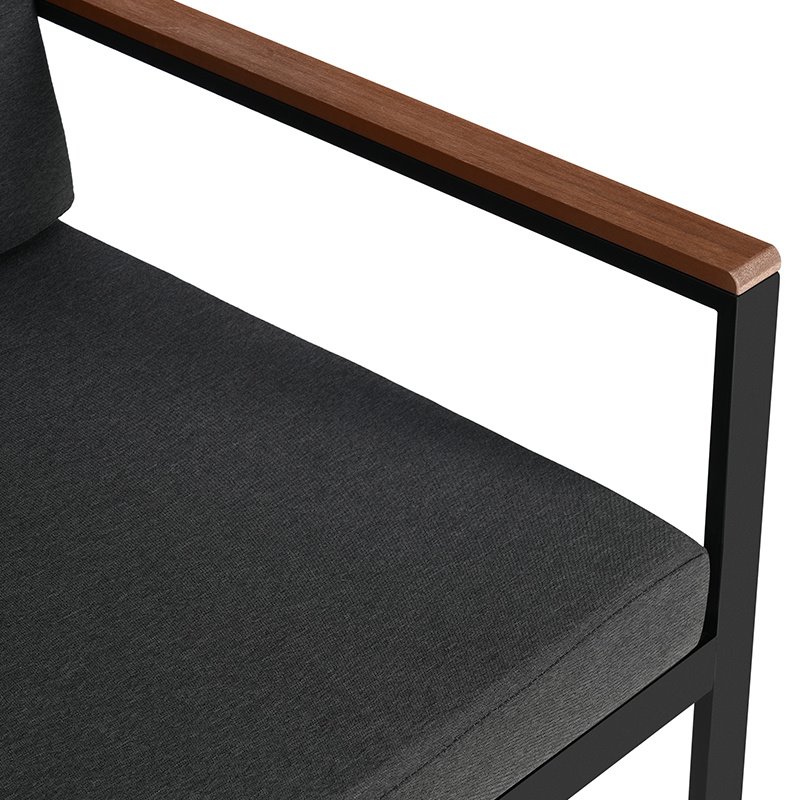 Grube poduszki na siedziskach i oparciach zapewniają wygodę podczas wypoczynku. Tkanina jest odporna na działanie promieni UV, a zdejmowane poszewki ułatwiają utrzymanie ich w czystości.