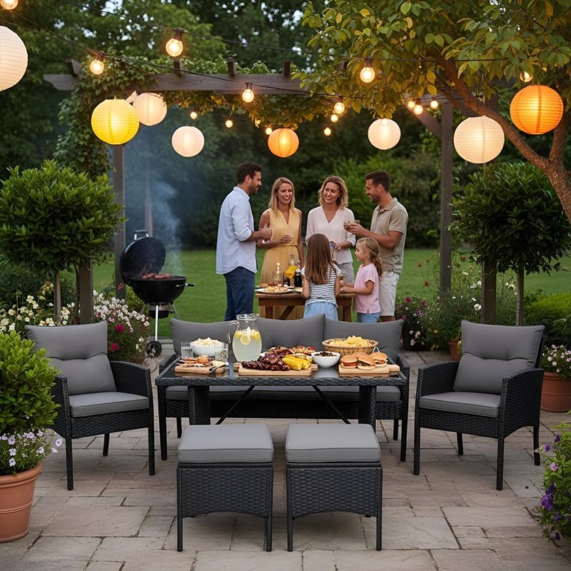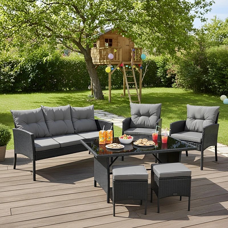 Zestaw VELACO dobrze odnajduje się w różnych przestrzeniach – od dużych tarasów i ogrodów po balkony, patio czy altany. Tworzy spójną i komfortową strefę wypoczynku sprzyjającą relaksowi i spotkaniom.