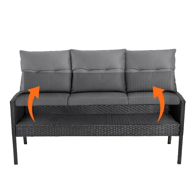 Opis produktu Zestaw mebli ogrodowych z technorattanu sofa, stół, krzesła, pufy Manas