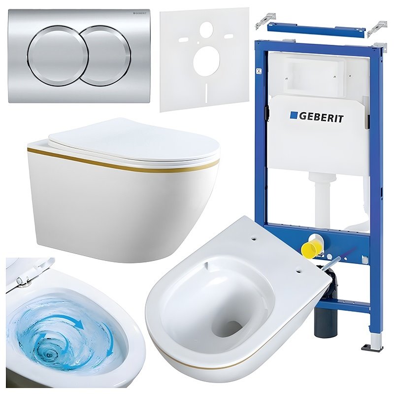 Opis produktu Zestaw podtynkowy stelaż GEBERIT DUOFIX + miska MIZU-WH-GL-TR-03 + przycisk DELTA 01 chrom