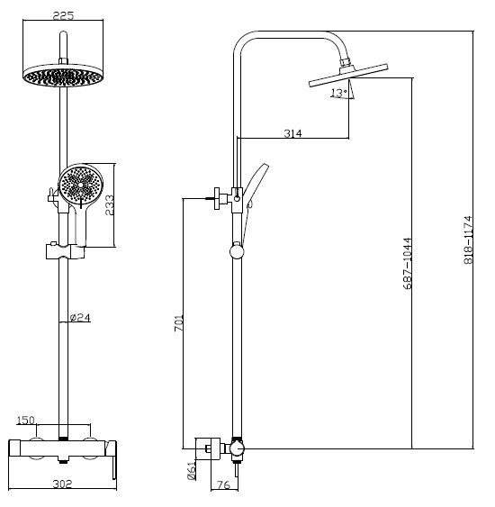 Opis produktu Zestaw prysznicowy natynkowy dwufunkcyjny chrom Ultimate ADUL6211C1 Avapax