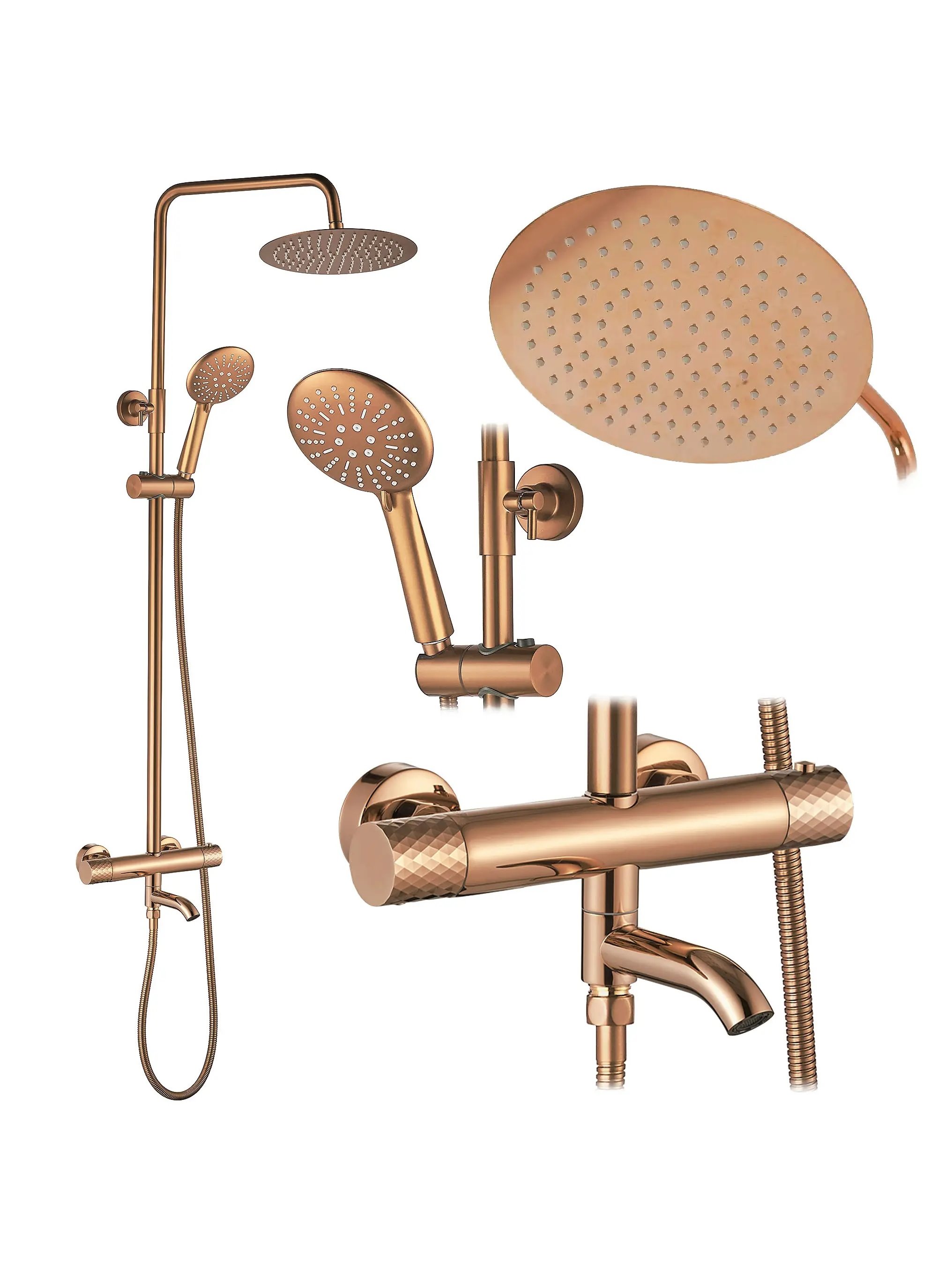 Opis produktu Zestaw prysznicowy natynkowy termostat Lungo Diamond miedź Rea