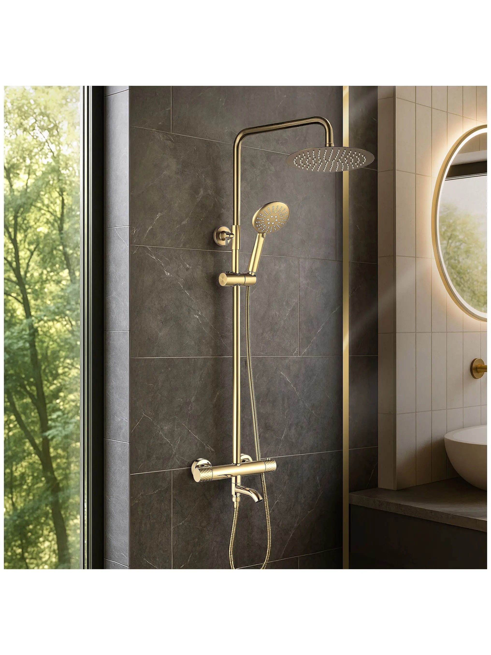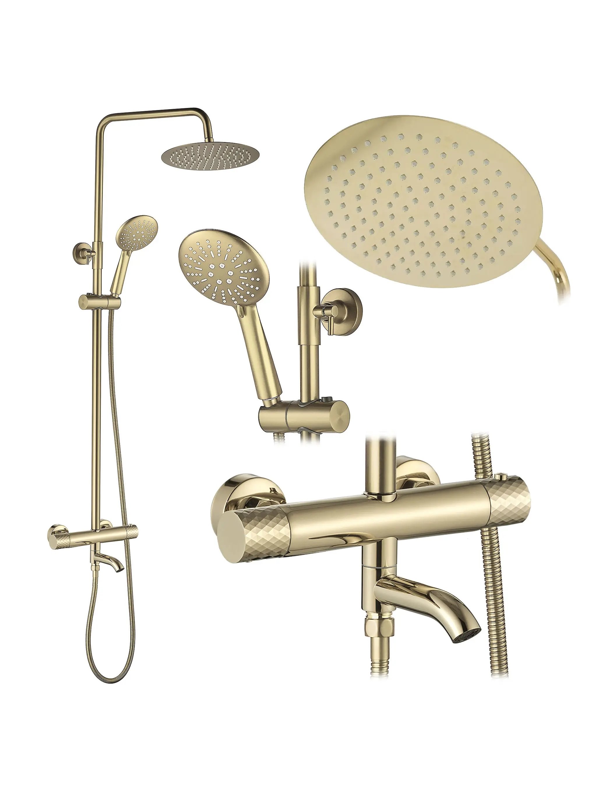 Opis produktu Zestaw prysznicowy natynkowy termostat Lungo Diamond złoty Rea