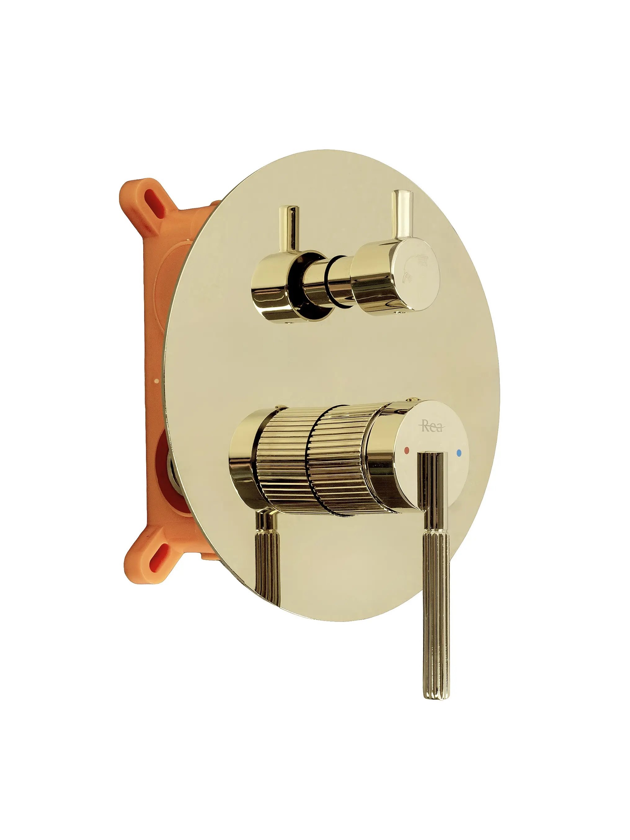 Opis produktu Zestaw prysznicowy podtynkowy box Argon Rea złoty połysk