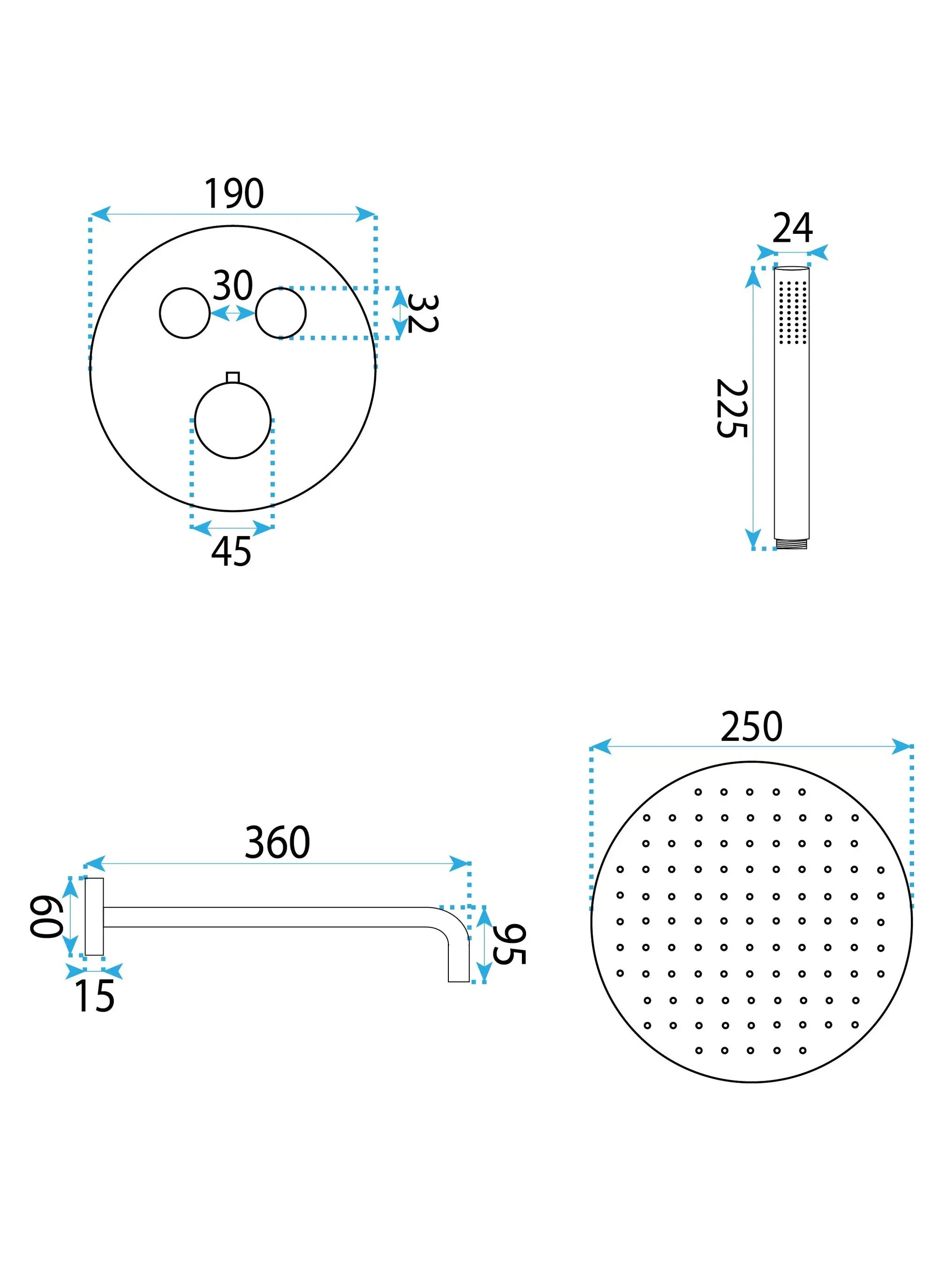 - Średnica deszczownicy: 25 cm