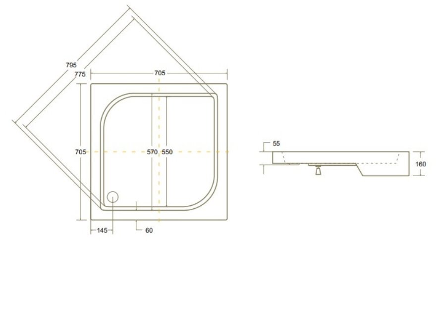 - brodzik akrylowy na regulowanym stelażu kwadratowy