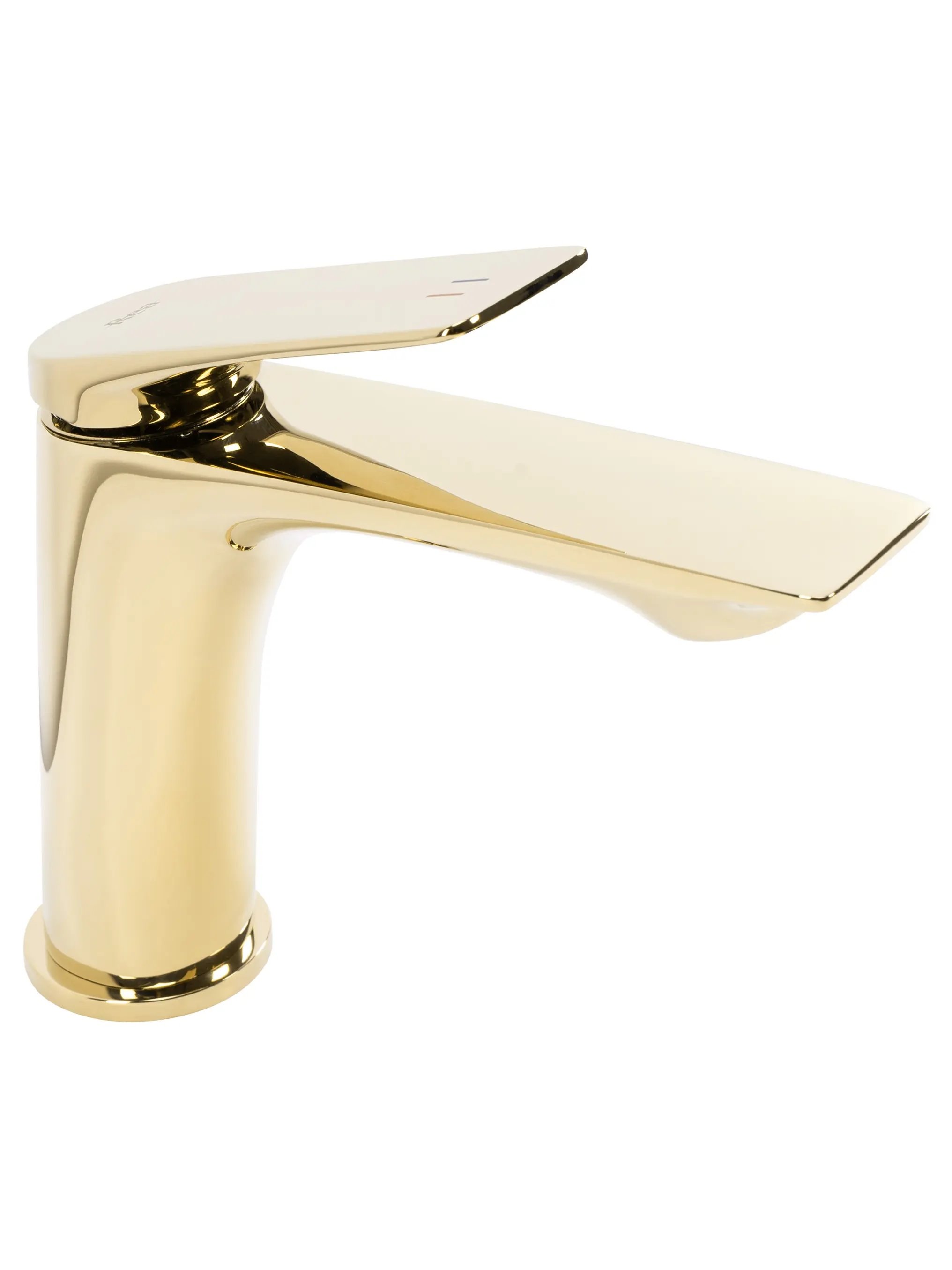 Opis produktu Złota bateria umywalkowa niska Avalon Rea