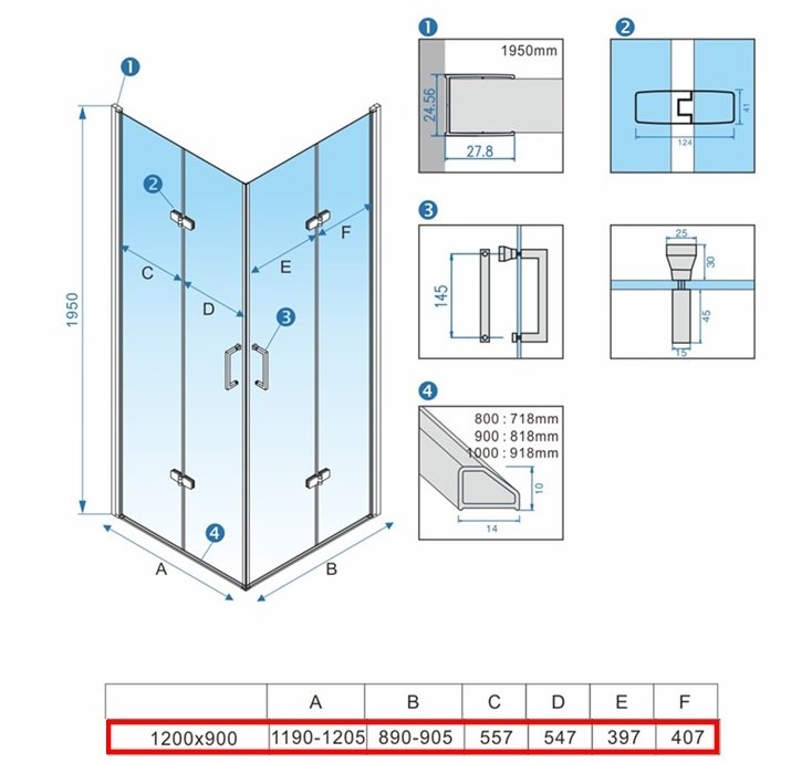 Opis produktu Złota kabina prysznicowa drzwi składane prostokątna 120x90 KZ13CG
