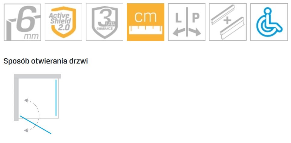 Produkty wyposażone są w zawiasy z funkcją unoszenia drzwi w trakcie ich otwierania i zamykania. Dzięki temu uszczelka, znajdująca się na ich dolnej krawędzi nie trze o podłoże podczas ich pracy. Rozwiązanie ułatwia korzystanie z produktu i przedłuża trwałość uszczelki. Zawias wykonany jest z wysokiej jakości metalu, zapewniając jego wieloletnią trwałość.