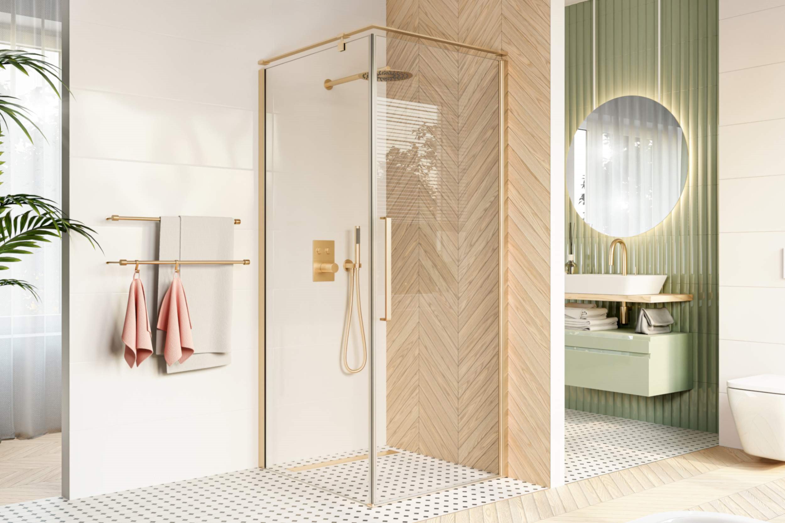 - piękne i funkcjonalne złote profile niwelują niewielkie krzywizny ścian pozwalając na idealne zamontowanie kabiny,