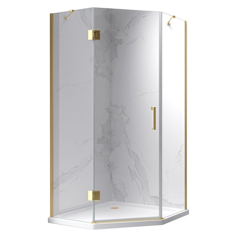 Opis produktu Złota kabina prysznicowa pięciokątna 100x100 drzwi uchylne KZ10C