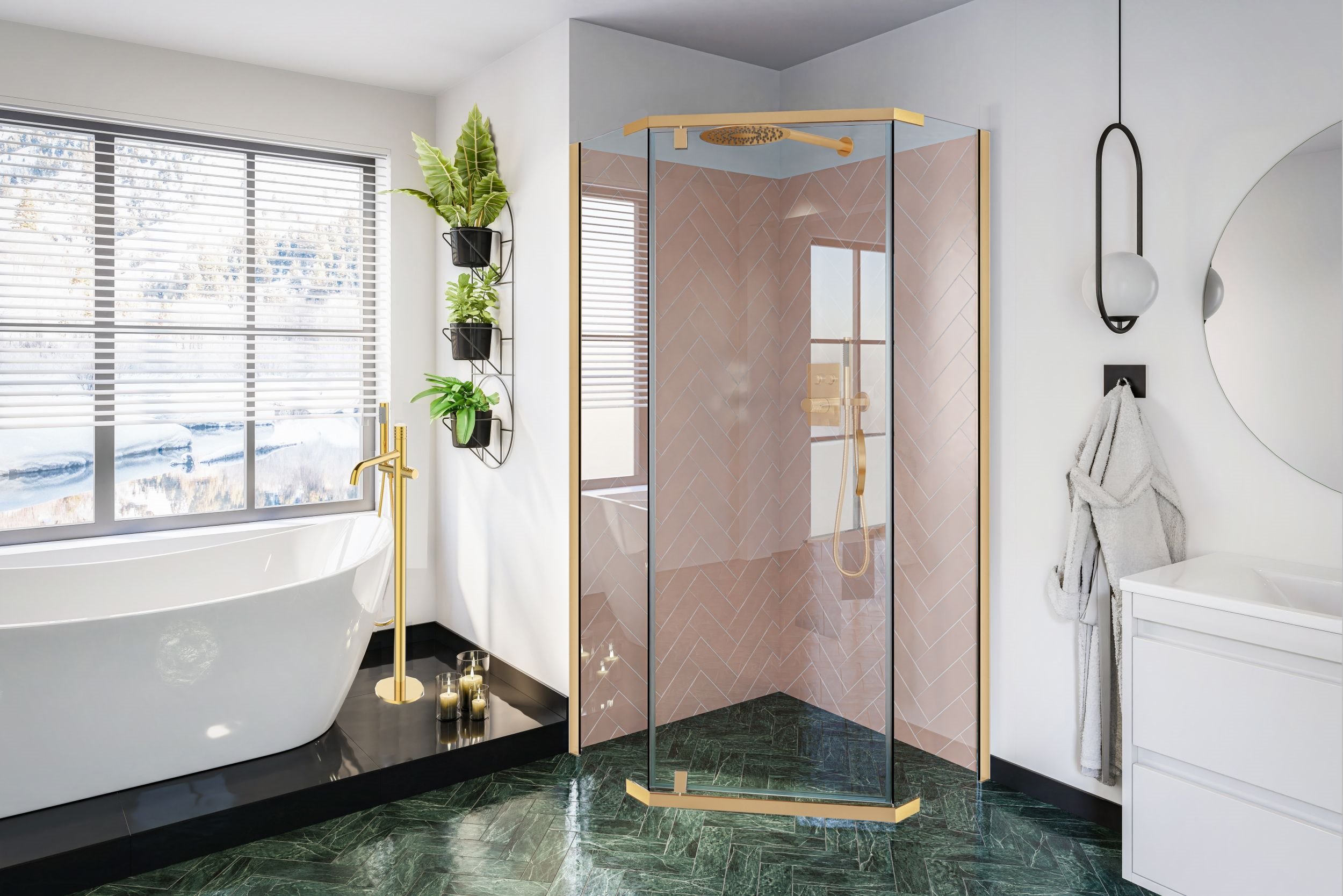 Opis produktu Złota kabina prysznicowa, pięciokątna 90x90 cm Stylio BK502PTZ+