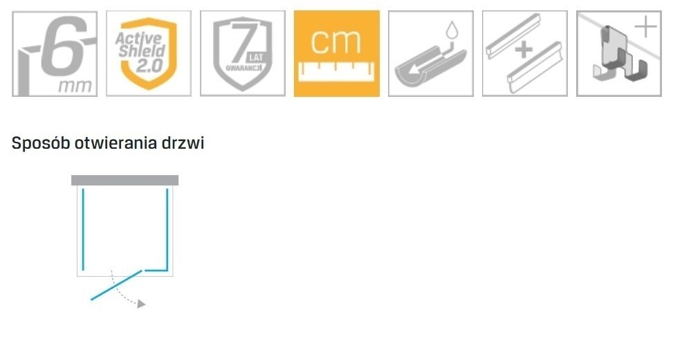 Zapobiega ściekaniu wody z drzwi kabiny na podłogę. Rynienka jest