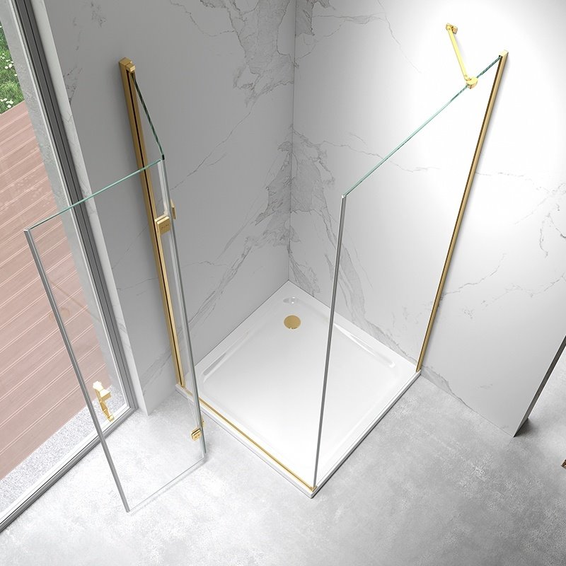 Opis produktu Złota kabina prysznicowa prostokątna drzwi pojedyncze składane 100x80 ZES-KZ20D-GL-100X80