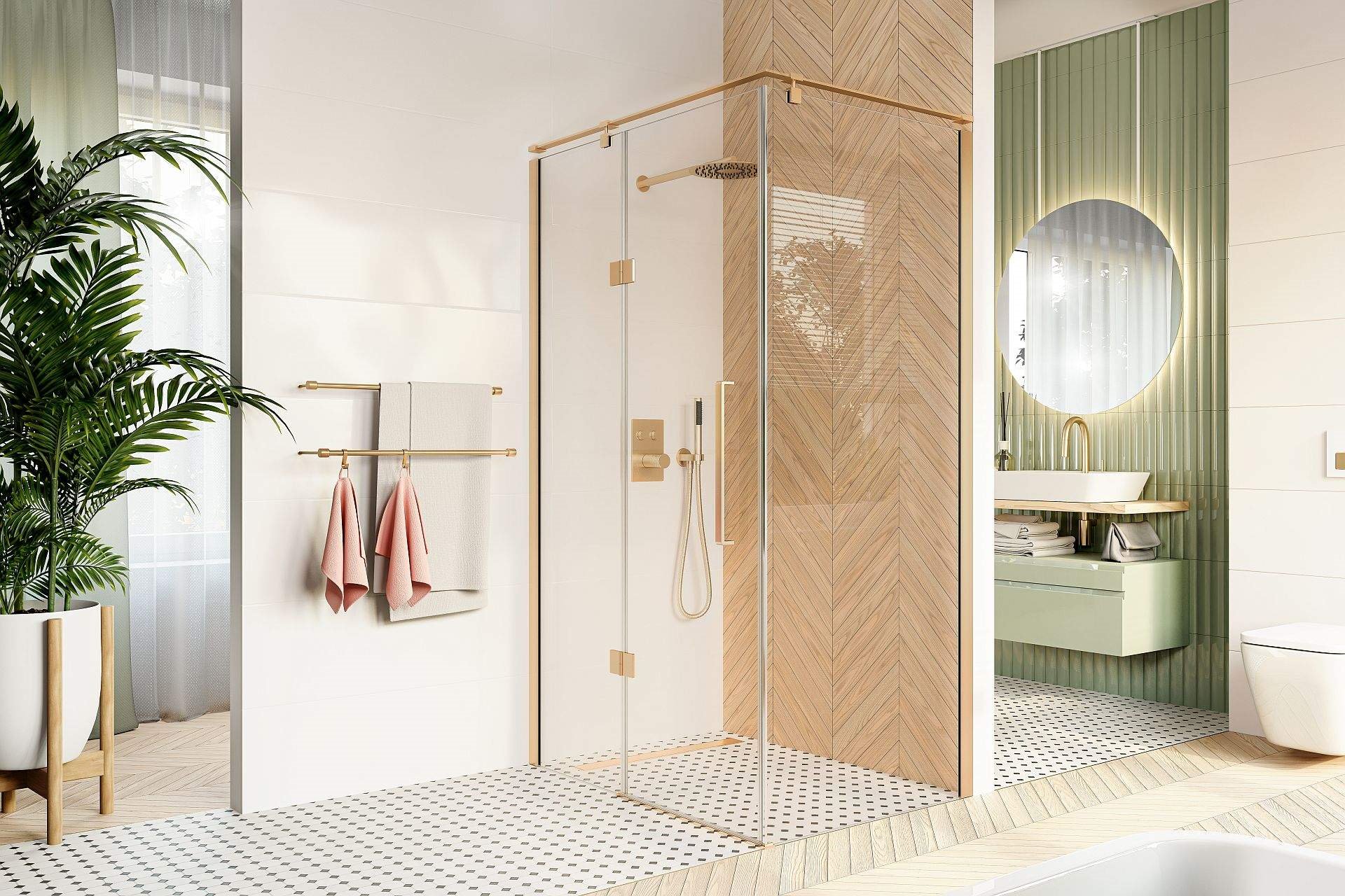 Opis produktu Złota prostokątna kabina prysznicowa 120x80 cm BK248T08/12ZL Fresh Line Lewa