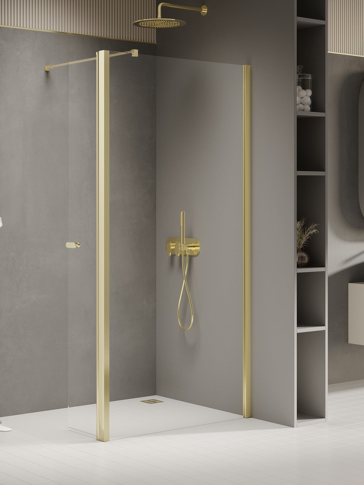 Opis produktu Złota ścianka prysznicowa 120 cm + element ruchomy 34 cm K-1973 New Soleo Light Gold New Trendy