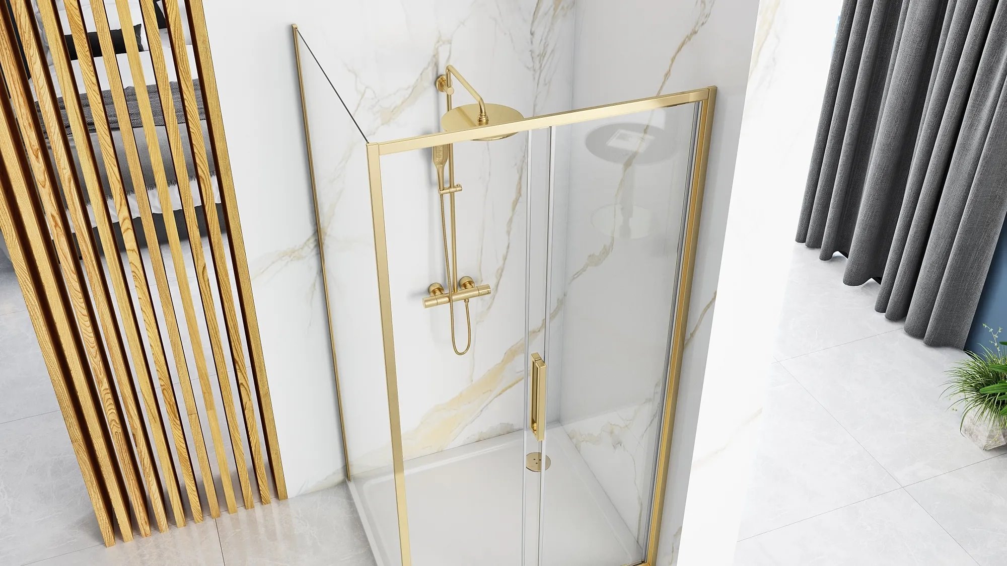 Opis produktu Złota szczotkowana kabina prysznicowa narożna rozsuwana 150x90 Rapid Slide Rea