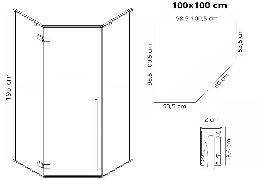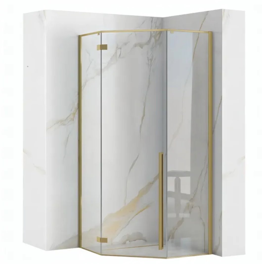 Opis produktu Złota szczotkowana kabina prysznicowa pięciokątna 100x100 Diamond Rea