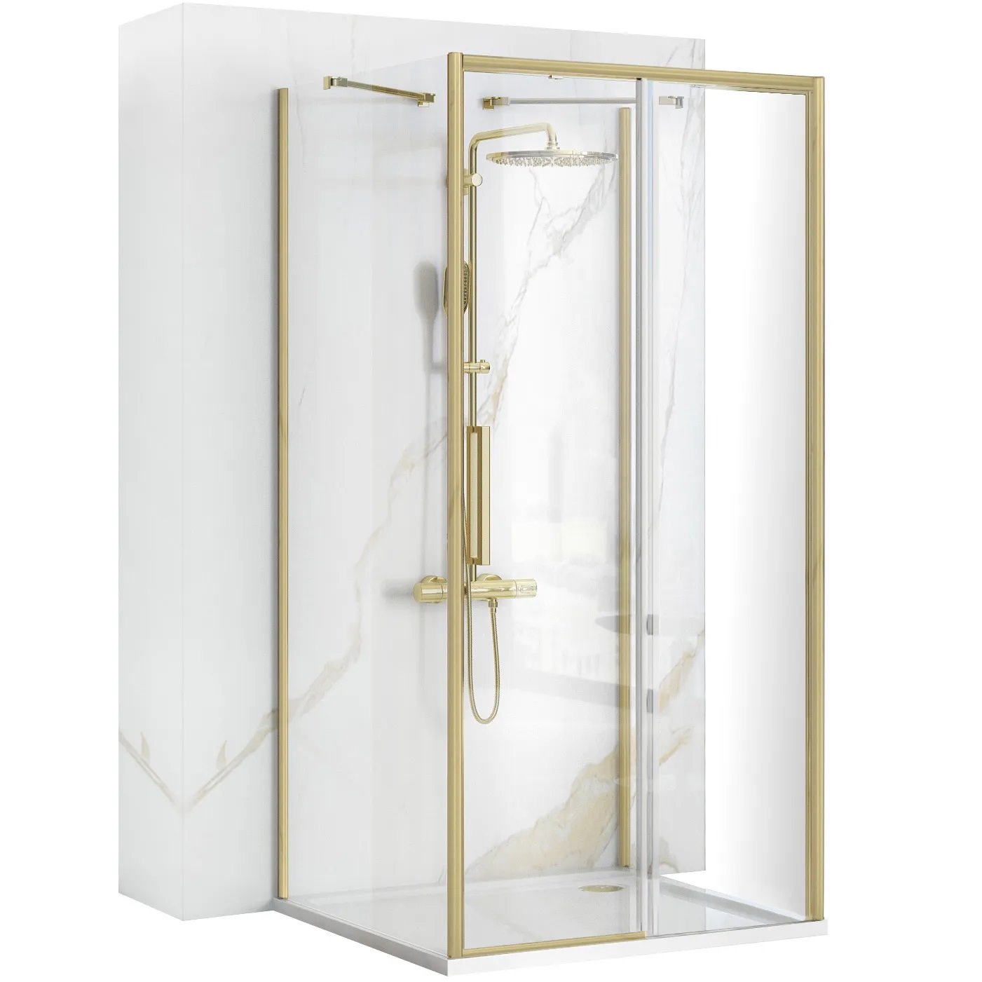 Opis produktu Złota szczotkowana kabina prysznicowa przyścienna drzwi rozsuwane 150x90 Rapid Slide Rea