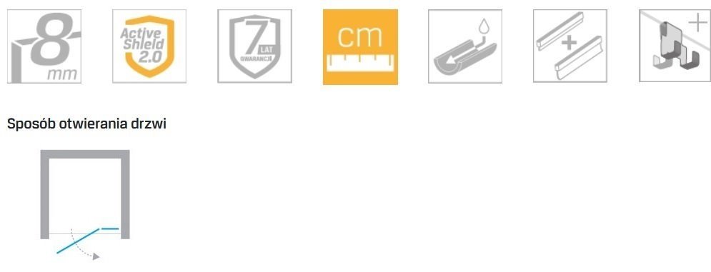 - estetyczna rynienka w dolnej części drzwi zapobiegająca ściekaniu wody na podłogę