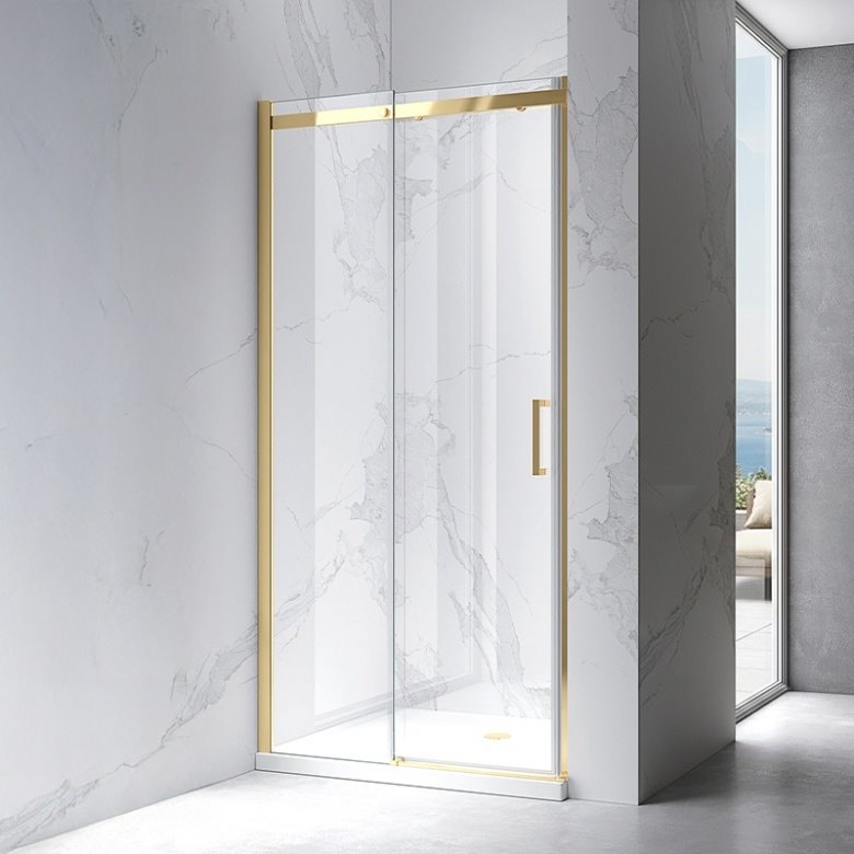 Opis produktu Złote szczotkowane drzwi prysznicowe do wnęki 115-120 cm rozsuwane szkło 8 mm ZES-KZ09C-GL-BR-120