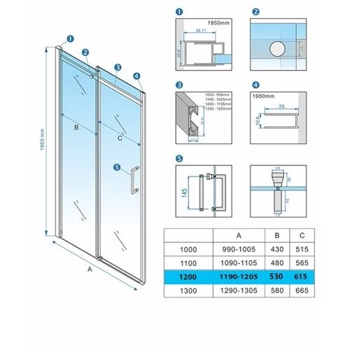 Cechy drzwi prysznicowych 120 cm ZES-KZ09C-GL-BR-120 Hydrosan:
