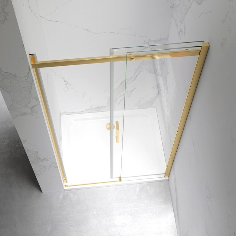 Opis produktu Złote szczotkowane drzwi prysznicowe do wnęki 135-140 cm rozsuwane szkło 8 mm ZES-KZ09E-GL-BR-140