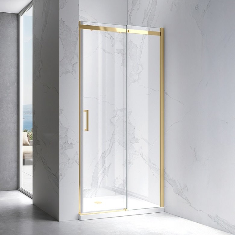 Opis produktu Złote szczotkowane drzwi prysznicowe do wnęki 95-100 cm rozsuwane szkło 8 mm ZES-KZ09A-GL-BR-100