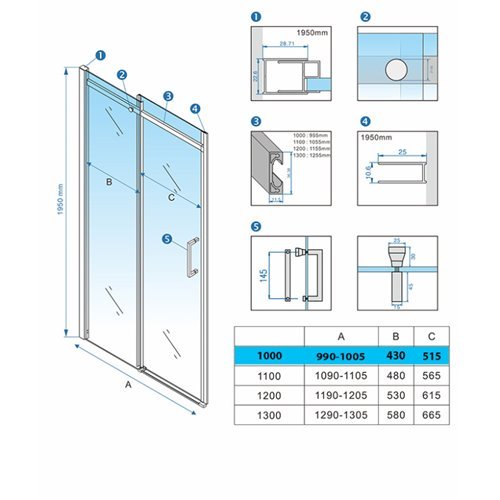 Cechy drzwi prysznicowych 100 cm ZES-KZ09A-GL-BR-100 Hydrosan: