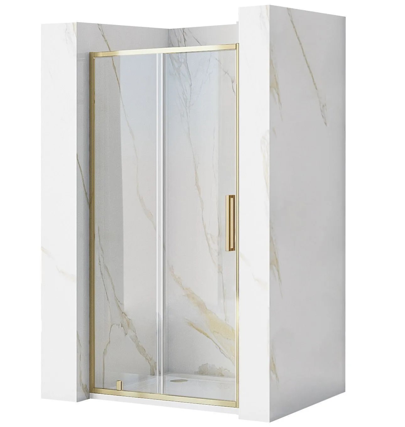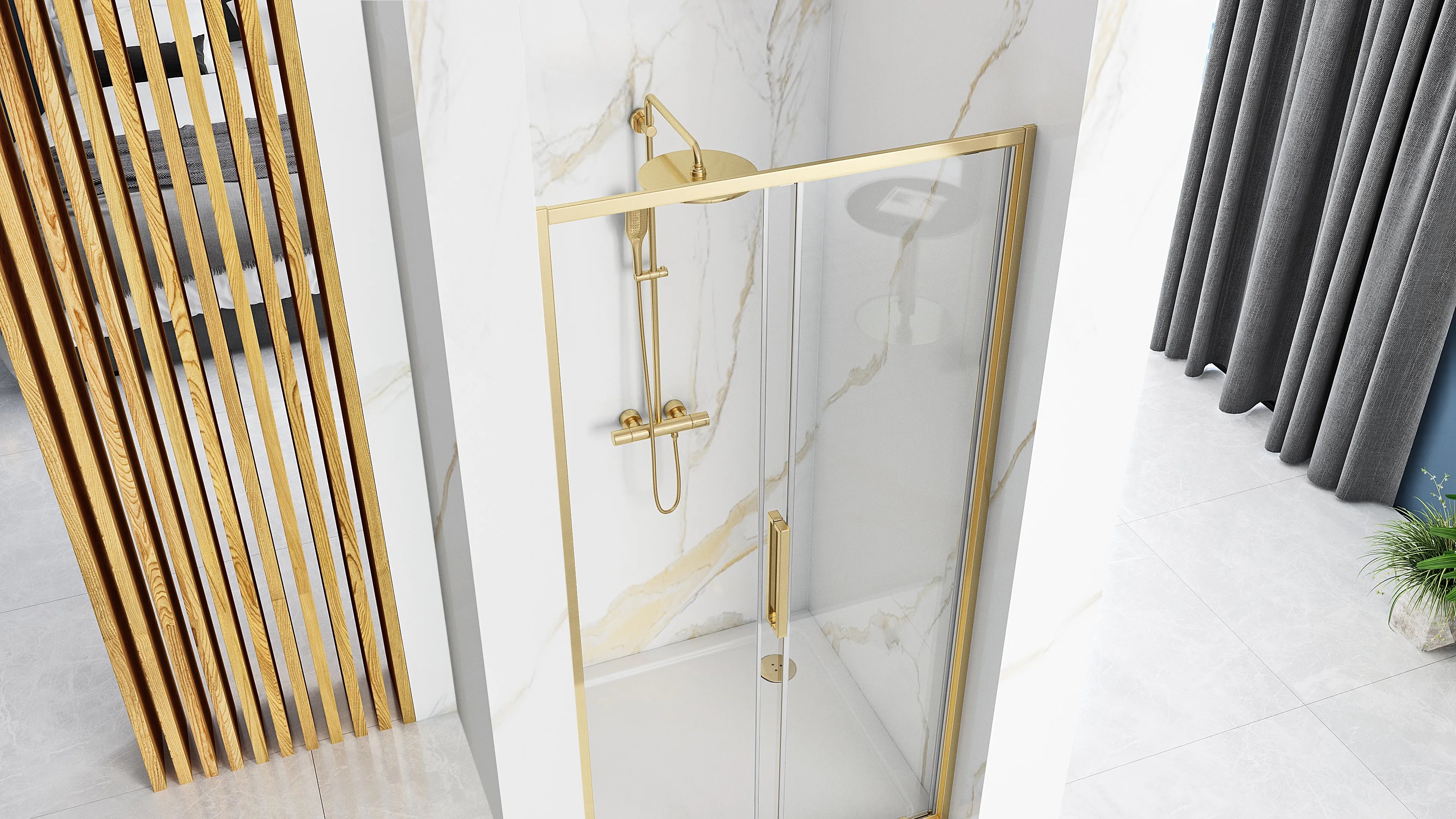 Opis produktu Złote szczotkowane drzwi prysznicowe rozsuwane 150 cm Rapid Slide Rea