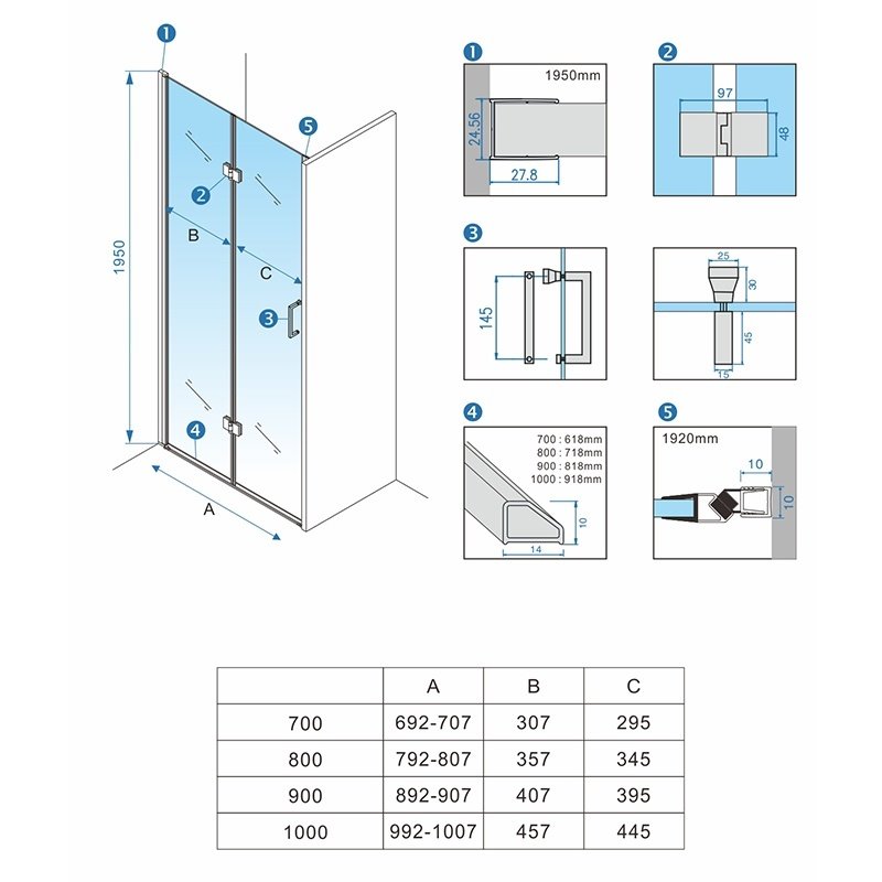 Dbałość o detale to nasz priorytet. Wszystkie elementy drzwi – od profili, przez zawiasy, po uchwyty – zostały wykonane z najwyższą precyzją i z zastosowaniem wytrzymałych, odpornych materiałów. Dzięki temu kabiny nie tylko prezentują się nowocześnie i elegancko, ale również zapewniają niezawodne działanie przez wiele lat.