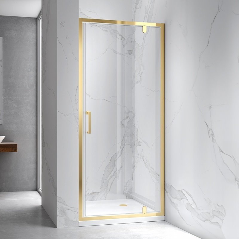 Opis produktu Złote szczotkowane drzwi prysznicowe uchylne do wnęki 80 cm ZES-KZ18B-GL-BR-80