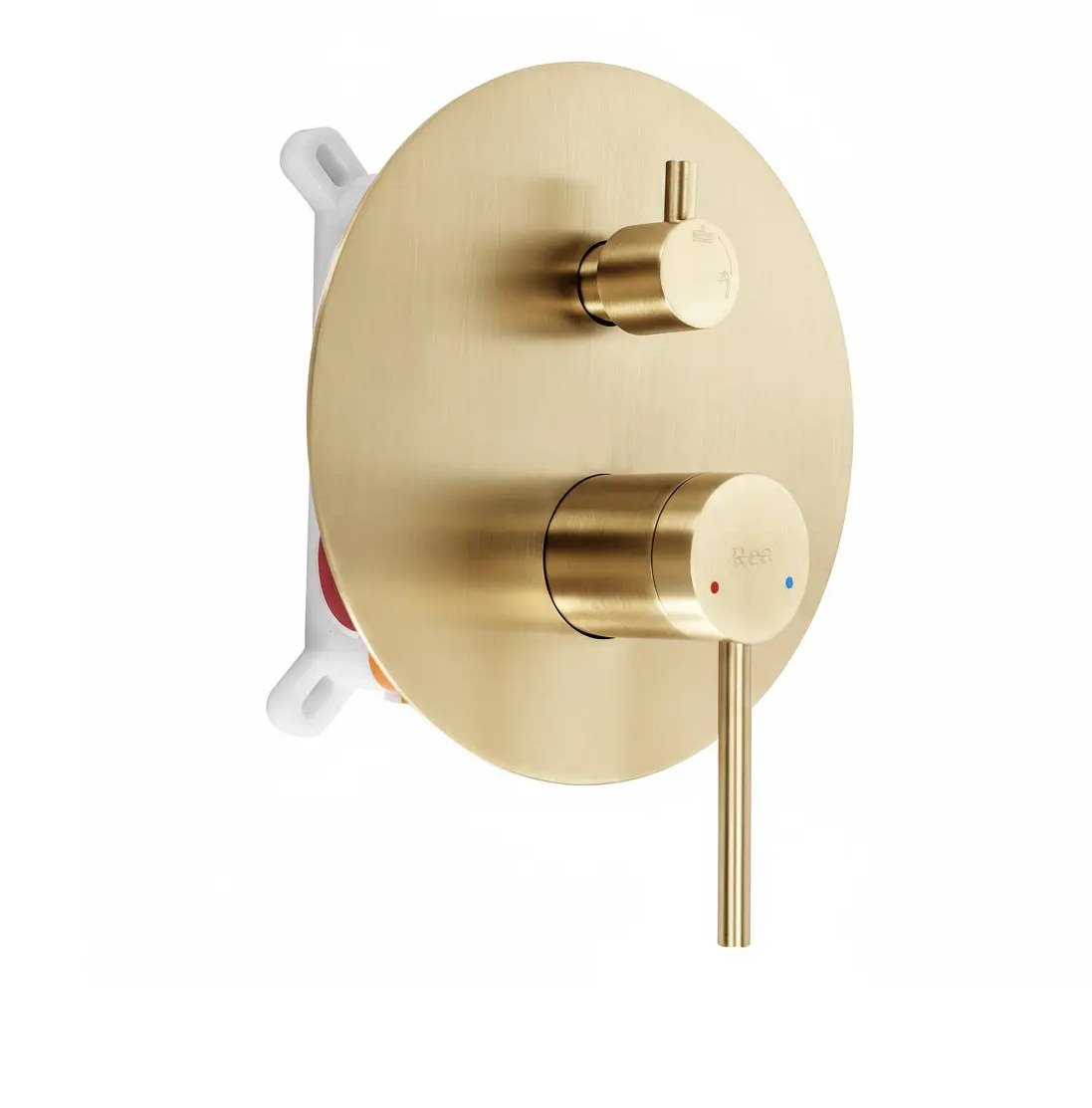 Zestaw prysznicowy podtynkowy Rea Foss/Clif Złoty Szczotkowany to idealne połączenie minimalistycznego stylu, funkcjonalności i luksusu. Zaprojektowany z dbałością o każdy detal, doskonale uzupełnia nowoczesne aranżacje łazienek, w których liczy się czysta forma, komfort i trwałość.