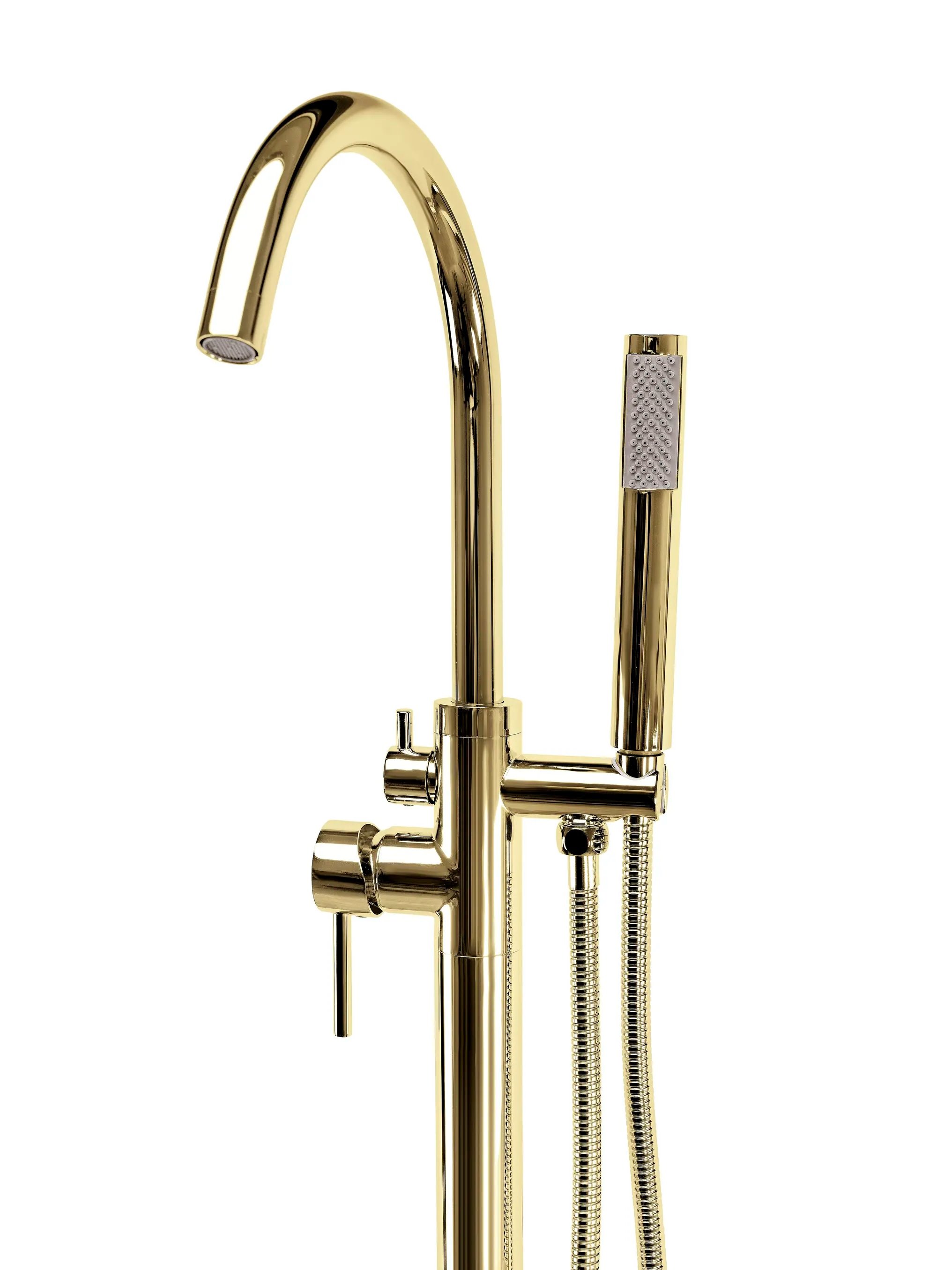 Opis produktu Złoty połysk bateria wannowa wolnostojąca Ortis Lungo Rea